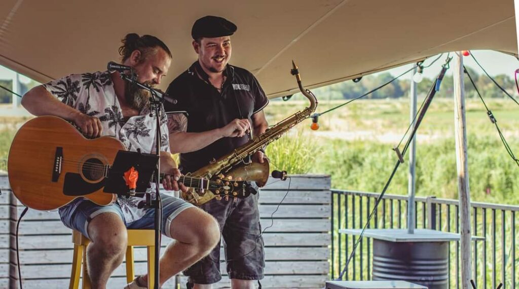 Tommy & Ronny; een vrolijk muzikaal duo uit Doetinchem waar elk nummer begint met een glimlach en een goede dosis humor. Tommy en Ronny spelen blues, pop, country en rock covers op geheel eigen manier. Met saxofoon, gitaar, Cagon en zang kinken de bekende en minder bekende klassiekers heerlijk aan de waterkant van de Oude IJssel. Vaak is er ruimte voor gast muzikanten en ook verzoek nummers vinden Tommy en Ronny altijd fijn.